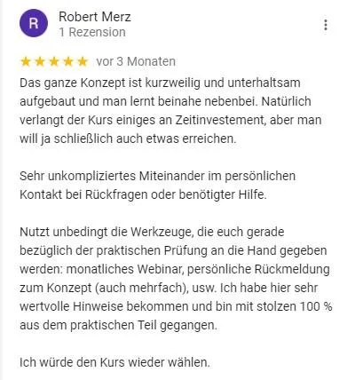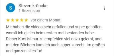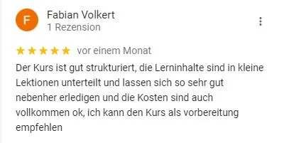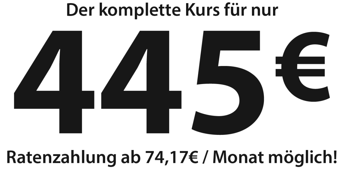 Die Prüfungsgebühr von ca. 170€ ist nicht im Kurspreis enthalten.