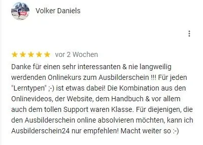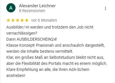 Sofort nach deinem Kauf erhältst du die Zugangsdaten zu deinem Online-Ausbilderkurs und kannst direkt mit der Vorbereitung beginnen.